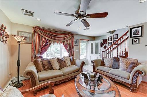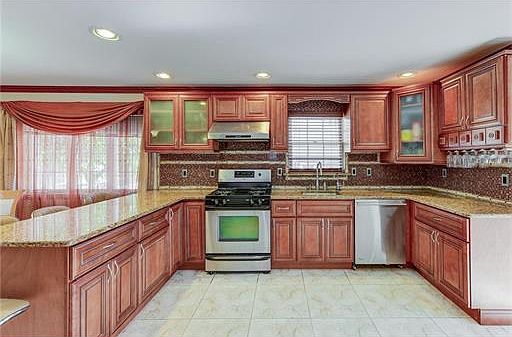 4 Bedroom 1 1/2 bath colonial featuring a stunning renovated kitchen with tons of cabinets & counter space*Granite,glass front cabinets,GE Monogram Fridge & built in Microwave, Breakfast bar,wine glass rack*Separate Eat in Area accommodates a large table. Beautiful Powder Room*Spacious Master Bedroom w/ WIC*Hardwood in