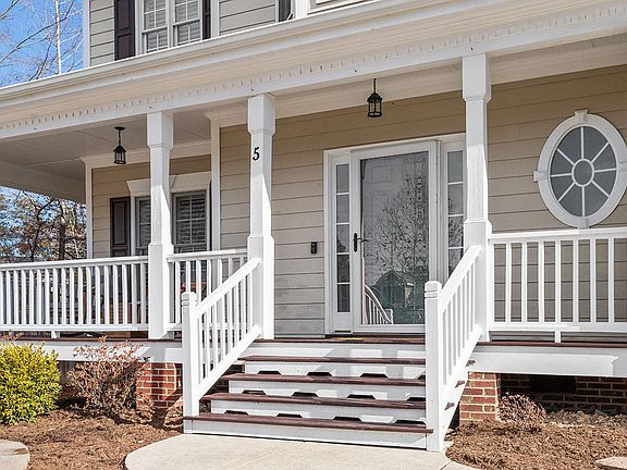Welcome to 5 Spring Water Lane, a beautifully designed home offering over 2,400 square feet of versatile living space. Nestled on a spacious lot in a highly desirable Durham neighborhood, this property combines modern comfort with timeless appeal. Immediately upon arrival you are welcome by the wrap around front porch ready to welcome people for years to come in a true southern fashion. Inside, the first floor boasts an open layout with a generous kitchen featuring rich cabinetry, granite countertops, and stainless-steel appliances. The living room flows seamlessly into the dining area, creating the perfect space for entertaining. Upstairs, the luxurious primary suite includes an updated bathroom with a soaking tub, separate shower, and dual vanities. Three additional bedrooms and a split staircase bonus room just off from the bedrooms provide flexibility for your needs and endless opportunities as the space is spacious yet private. This home even caters to your furry members! A thoughtfully designed pet nook under the staircase ensures your four-legged friends have a cozy space to call their own. Outdoor living is a dream with a screened porch and deck overlooking a private, tree-lined backyard—perfect for relaxing or playing. Conveniently located near Eno River State Park and a short drive to downtown Durham, this home offers both tranquility and accessibility. Don't miss your chance to own this spacious, updated gem! We cannot wait to welcome you home to 5 Spring Water Lane.