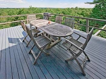 Rugged hillside setting affords spectacular views of Harraseeket & Casco Bay. Expert renovation, finest wood finishes & appointments blend in harmony w/natural surroundings. Beautiful hardscaping & gardens.