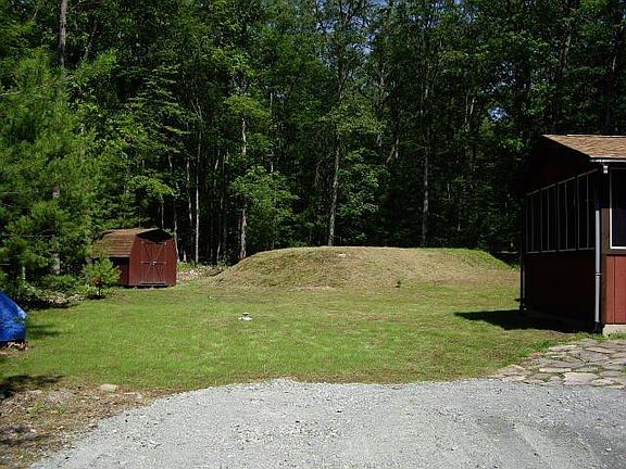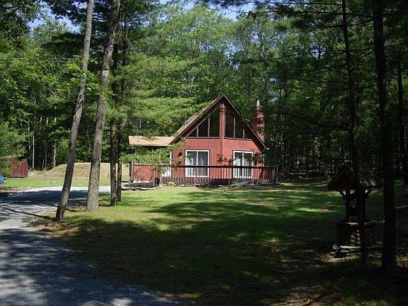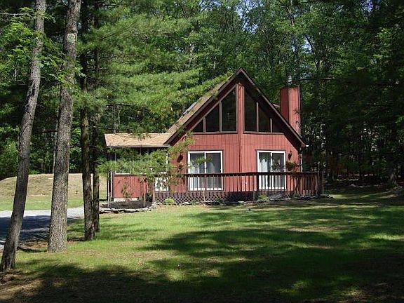Immaculate 3 bdrm, 2 bath Prowfront Chalet on 2 wooded & private acres, 5 minutes from Lake Wallenpaupack. No Dues! stone FP, cathedral ceilings, large master suite w/walk-in closet, 4 season rm, oak kitchen w/breakfast bar., Beds Description: 2+Bed1st, Baths: 1 Bath Level 1, Baths: 1 Bath Level 2