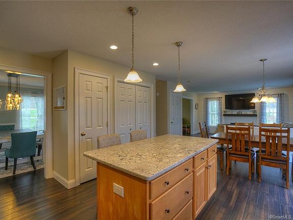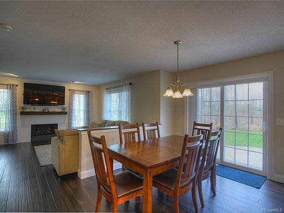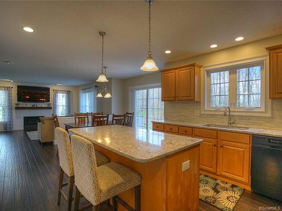 Stunning 4 bedroom Colonial with 2.5 baths, 2,441 sq. ft. and just under an acre on cul-de-sac. Open floor plan great for entertaining has spacious eat-in kitchen, center island and glass slider that opens to outdoor stamped patio. Main floor family room with fireplace. Formal dining room and living room. Upper level bedrooms have plenty of closet space with a master bedroom suite and convenient laundry area. Master has full bath with double-sinks, vaulted ceilings and walk-in closet. Home is located in a desirable subdivision and comes with central air, Thermopane windows and beautiful large windows. Full basement and attached 2 car garage. Large level backyard. Private setting and close to center of town.