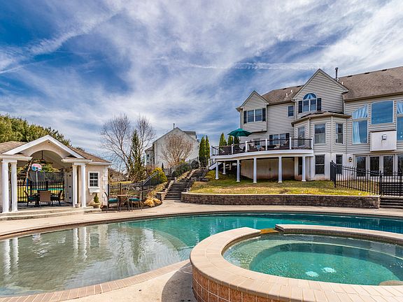 Magnificient Cezanne Provincial model nestled on 1 1/3 acres premier lot in a private cul-de-sac of prestigious Estates at Faraway Farm! Conveniently located minutes from 422,113, 29, Ridge Pike, Germantown Pike, & Egypt Rd. Easy access to King of Prussia Mall, Providence Town Center, Philadelphia Premium Outlets, charming Skippack Village, Lederach Golf Club, Evansburg State Park, Rivercrest Golf Club, Valley Forge Park, & Upper Providence Township Recreation Center at Anderson Farm Park. The elegant portico with fabulous brick columns with double French doors leads to your lavish grand hall foyer with brand-new hardwood floors, custom trim, & elaborate wainscoting. The awe-inspiring , 2-story great room boasts a stunning wall of picture windows, sophisticated vaulted ceiling, sleek Bruce Espresso hardwood floors, dramatic stone fireplace, recessed lighting, exquisite chandelier, and breathtaking views of your private backyard oasis, complete with a Gunnite pool & hot tub with lavish pool house, wired for exterior audio system, lush landscaping , with its very own trickling creek. No detail has been spared... even the pool house has a full kitchen, powder room,locker/changing room, and separate storage room for pool accessories. The extravagant kitchen features mesmerizing Colonial granite countertops & island, handcrafted 42 inch cabinets, 18 by 18 ceramic tile flooring, natural stone backsplash, soft-close drawers, professional grade appliances...the list is endless! The sundrenched breakfast room has a fabulous morning room addition with cathedral ceilings, skylights, plantation shutters, and leads to the Trex deck overlooking your very own secluded paradise perfect for entertaining! The rustic dining room has gleaming hardwood floors, crown molding, chair rail, & designer paint. The extravagant office was remodeled with cherry cabinets & floors, second wall of windows with starburst above, cozy window seat, custom blinds & window treatments, recessed ligh