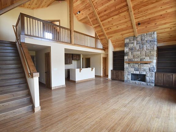 BIG VIEWS! UPSCALE COMMUNITY! You will be uplifted when entering the living area with soaring wood ceilings, floor to ceiling chiseled stone wood burning fireplace plus enormous windows and doors that capture the surrounding mountains! Entertaining here will be just what you are looking for! The open concept kitchen and living room spill right on to the beautiful deck with lovely architectural details that takes in the mountain vistas! Wake to the beauty of the mountains from the main level master suite which will pamper you with a step in shower and jetted tub! For your convenience the main level is complete with a half bath and laundry area. The upper level offers privacy for family or guests with two additional bedrooms with shared full bath, lovely wood ceiling details and private deck from one! The upper level also includes a loft for relaxing or paperwork. The basement is yours to finish for additional living space to entertain or more sleeping space! This gorgeous mountain home awaits your final personalizing touches of counter tops and appliances! Minimal yard maintenance!