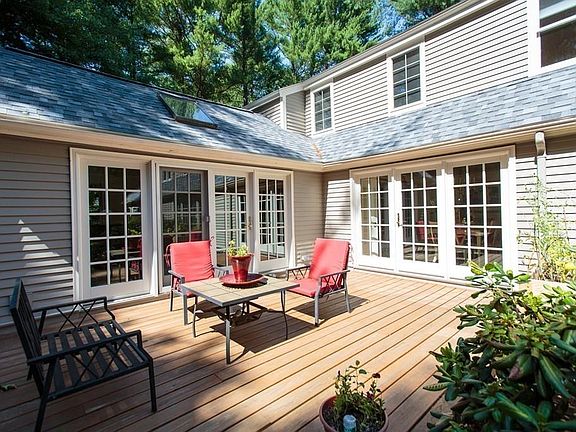 This beautifully maintained Cape is located in Wayland's coveted Claypit Hill neighborhood. Beautiful hardwood floors throughout, the first floor includes a living room that opens to the dining area and overlooks a picture perfect backyard. A fabulous family room addition with a cathedral ceiling and exposed beams include a wall of windows that floods the room with light and adjoins an updated kitchen with white cabinetry. A generous laundry room is located around the corner. The flexible first floor bedroom suite could be used as a guest bedroom or first floor master. A paneled library and lovely three-season porch complete the main floor. The second floor includes a generous master suite, hall bath, and three additional bedrooms. An expansive finished playroom in the lower level is versatile for a busy lifestyle. Ample storage abounds in the unfinished space. The beautiful grounds are graced with mature plantings, a level backyard, and a deck for outside entertaining.