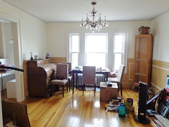This sunny and spacious first floor apartment in a classic Miller style two family home is full of charm and character. This unit features a large living room with fireplace, formal dining room, sun room, modern eat-in kitchen with half bath, 2 bedrooms and full bath with radiant flooring. Washer/Dryer in basement. Oil heat. One car garage parking plus one car parking in driveway. Common yard. **COMMUTERS**Convenient bus stop close to your front door.** Easy commute to Harvard Square, Downtown, Storrow Drive, Mass Pike and the Arsenal Arts Center. Enjoy the nearby parks, shops and restaurants. Small dogs only. No cats.