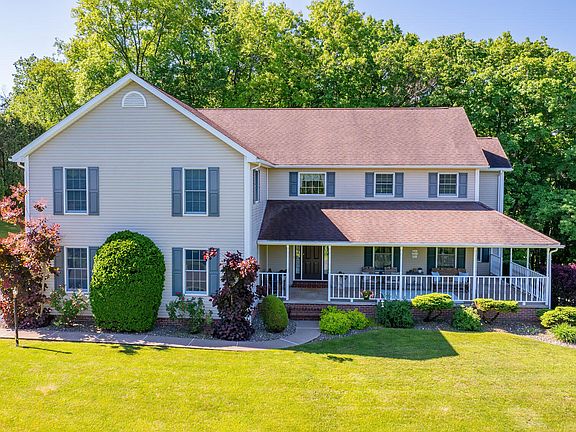 This 5 bedroom, 3,320 sq ft Two Story home has been lovingly maintained and thoughtfully upgraded inside and out! Located on 1.48 acres in the Foxtail development in the Bloomsburg School District area. The home's impressive curb appeal and oversized covered porch set the tone. Step inside to find a gracious foyer and sweeping staircase, woodgrain LVP flooring, and elegant finishes throughout. The main level is designed for both everyday living and entertaining, with a spacious family room featuring a cozy woodburning fireplace and direct access to the expansive trex deck with a built in hot tub. This is your own backyard paradise with professional landscaping, serene tree lined views, and privacy. The kitchen is the heart of the home, beautifully updated with granite countertop, a generous center island, and ample cabinetry. Natural light beams through the dining area, and the formal dining room allows for entertaining! The living room could make for a lovely office or playroom, featuring access to the porch. Upstairs, the luxurious primary suite is a true retreat with a spa inspired master bathroom, with custom tiled flooring and walk in shower, with a separate dressing area with a sink and plenty of cabinetry off the spacious walk in closet. Additional bedrooms are generously sized, with ample storage space, and freshly painted, with a neutral full bathroom with double sinks, and a walk-up attic for extra storage. The lower level has plenty of opportunities! This level walks-out to the backyard, and has plumbing installed for a future bathroom. Enjoy peace of mind knowing this home has been impeccably cared for, in a desirable neighborhood, with plenty of room to grow into and stay awhile!