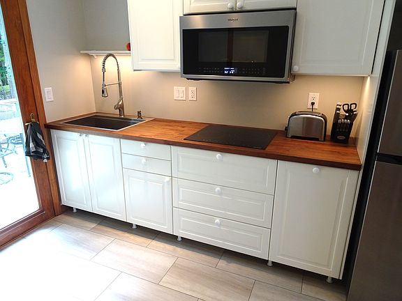 Private duplex home on cul-de-sac. Enter the tiled breezeway from the covered front porch or from the attached garage with an extra deep space to park your vehicle away from the elements. The breezeway has a new kitchen (2023) with combination microwave + convection oven, extra deep sink with pull out faucet and soft close cabinets. Turn to the right into your 14 x 18 living room with wood lined, vaulted ceiling and flat screen TV mount. Straight back from the breezeway is your 10 x 24 wooden deck and tree lined back yard. Head up the stairs to the extra large bedroom illuminated by windows at either end with 8 recessed dimmable ceiling lights. One end of the room has TV coax with 2 wired ethernet connections for a home office, extra living space or guest bed. Keep comfortable with dual ceiling fans and the efficient mini-split for heat or A/C (new in 2023). Storage consists of a bi-fold door closet plus 3 sets of knee high closets. The tiled full bath with standup shower was remodeled in 2024 with a new toilet, vanity, mirror, wall cabinet and combination washer + dryer. Store your linens using the built-in nook. Almost 1000 square feet is yours. Less than 1 mile from I95. Walking distance to the Clinton Outlets. Athletic fields and playgrounds are across the street. Note: backyard soil will be seeded this fall. No smoking on the property. Water, sewer and trash included in rent. Tenant responsible for electric usage based on sub-panel meter. Internet is $25/mo. $38 application fee for background check. References required. $2000 per month rent - must be able to show evidence of gross income at least 3x rent. $3000 security deposit. One pet or service animal allowed, but will require an additional deposit. This is a quiet community. All surrounding neighbors are 50+ years of age. Parking is best suited for someone with 1 vehicle. If the home's layout will work for you and the neighborhood sounds like a good fit, feel free to request a tour (by appointment only) or ask further questions.