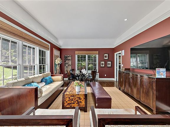 Warm and welcoming home on two pristine acres with enticing outdoor amenities including a pool, spa, fire-pit, basketball court and playground. This meticulously maintained home offers formal and informal spaces with a bright gourmet eat-in kitchen which opens to an expansive porch overlooking the rear yard. Three bedrooms reside on the first floor and the grand master suite with two large walk-in closets and a luxe master bath is on the upper level. The large walk-out lower level provides additional living space with a rec room, study/den (or 5th bedroom), and mudroom with access to the garage and rear yard. Enjoy the finest of indoor and outdoor living, located close to the vibrant town of Armonk. 45 Minutes to NYC.