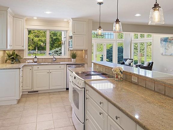 - Kit Dscrp: Pantry, Countertops - Stone/Granite/Solid, Flooring - Stone/Ceramic Tile, Kitchen Island, Stainless Steel Appliances, Recessed Lighting, Remodeled, Walk-In Storage, Lighting - Pendant