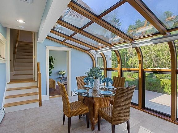An absolutely stunning custom built Cape set on nearly 5 private acres of sprawling lawn, stone walls, fruit trees and woodlands. Take in the view from the deck or step inside and enjoy from the wall of windows in the sunken living room with cathedral ceiling and skylights or the all season sun room off the kitchen. The granite/stainless kitchen has walk in pantry and opens to dining area. The open, airy 1st floor master bedroom boasts a walk in cedar closet and luxurious master bath with radiant heat flooring, tiled walk in shower, soaking tub and spacious granite topped double vanity. Plenty of room to work at home, both in the formal study with built in cabinets and in the loft area above the master bedroom. Two additional bedrooms with new carpet flank another full bath. The 2nd floor also houses potential au pair or in law suite with 3 rooms, full bath and private access thru the 3 car garage. Full basement provides storage and potential living area. Make this private oasis yours!