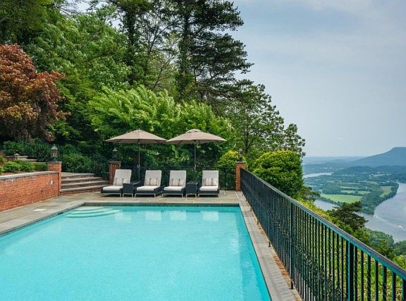 Stunning Signal Mountain brow estate constructed with the finest materials and quality of workmanship. Tennessee River views from the home, patios and pool. The main level offers the living areas, fabulous kitchen with solid cherry island and dining areas and a large master suite with a spacious bath suite and separate walk-in closets. Upstairs offers guest bedrooms and a nursery/play room. The lower level offers an additional den or teenage/in-law suite. The lawn is perfectly landscaped with mature trees and plantings. Three car garage, pool and cabana, multiple covered & open porches and wine cellar complete the property.