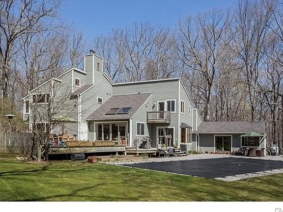 Escape to this oasis situated on a private cul de sac, surrounded by Grace Robinson's 37 acre nature sanctuary. Minutes to schools and town center, short drive to neighboring towns. This perfectly designed Contemporary. Restoration/Rebuild in 2008, home features gourmet kitchen w/Calcutta Island & granite counters, formal dining, living room w/ vaulted ceilings & sliders to gorgeous expansive deck, patio & gunite pool. Open & airy throughout, including master bedroom suite with his/hers walk in closet & gas fireplace ,3 other bedrooms, 4.5 baths, 2 fireplaces, office, sitting area & lower level bonus suite w/ full bath- perfect for aupair, in law situation. Luxury & quality throughout. See Addendum.