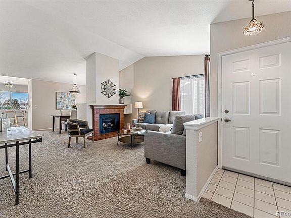 Enjoy easy single level living and golf course views in the 55+ gated community of Gleneagles Village! Located on a quiet cul-de-sac, this wonderful townhome sits in one of the best locations in the community. Take in the beautiful views of the golf course and mountains or relax and cozy up to the gas fireplace in the welcoming living room. The open plan design with a formal dining room creates a perfect space for entertaining, while the spacious primary bedroom is a special retreat with its own lovely views and sliding glass door to the patio outside. A second non-conforming bedroom (no closet) is ideal for use as a guest bedroom or office and has easy access to the home's main full bathroom. The home is well designed with plenty of room for storage in the oversized attached garage in addition to the home's closets, and there is additional storage in the crawl space if needed. The HOA provides for low maintenance living by providing external maintenance (with roof), snow and trash removal, street maintenance and landscaping, and the nearby remodeled clubhouse hosts many activities and boasts large community rooms and an outdoor pool. Gleneagles Village is a great golf course community surrounded by numerous trails, and just minutes away from the many amenities of Lone Tree and Highlands Ranch. Come and see for yourself what makes this such a special place to live!