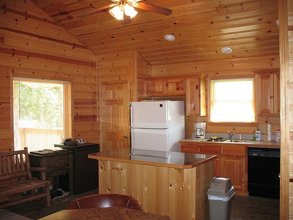 Like new log home in nice restricted area. Lots of knotty pine in kitchen and living area. Large bedrooms with nice closets. Large partially covered deck overlooking quiet cove where community docks are located. 10 x 28 boat slip with lift comes with home.