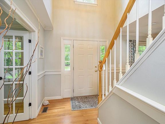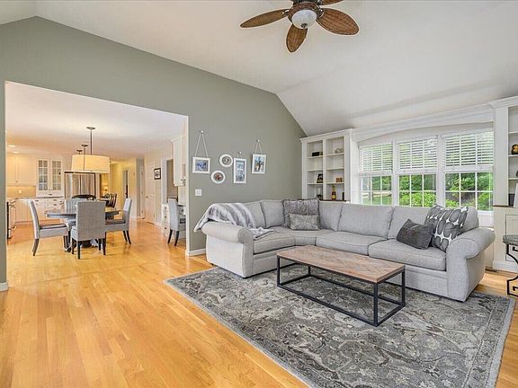 A very special property with lots of outdoor living space and elbow room inside - entertaining made easy and relaxing. The setting is private on a 1.39 acre lot at the end of a cul-de-sac and abutting Maple Swamp Conservation, A light bright entry welcomes you and invites you into the renovated kitchen with white cabinetry, solid surface counter tops, stainless appliances and breakfast bar island - the heart of the home. This space includes a built in desk, breakfast area and slider to deck leading to extended patio with fire pit and room for a future pool. The living room features cathedral ceiling, gas fireplace and built-in bookcases - a place for all to gather. Need a formal dining room - check. Need a home office - check. Need or want a first floor primary bedroom suite that is difficult to find in a Colonial - check! Upstairs are three bedrooms, loft and full bath. There is a two car garage and mud room and plenty of storage. So many updates - kitchen, roof, central a/c, gas fireplace, backyard landscaping, furnace, wired for generator, Sandwich Lantern outdoor lights and more. A place to call HOME. A short drive to Sandy Neck Beach and easy access to highway.