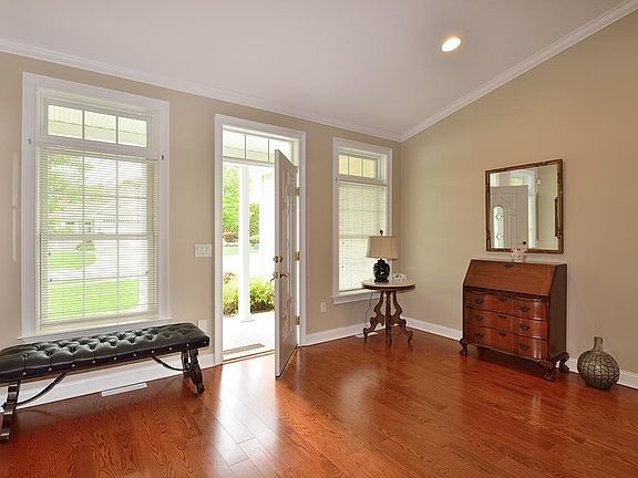 A LUXURIOUS FREESTANDING CONDO at the desirable STRONG FARM ESTATES.This is simpler living at its best! Walk in to a SPACIOUS living area with CATHEDRAL CEILING , a DOUBLE GAS FIREPLACE to a sitting area with FRENCH DOORS, You will love cooking in this GOURMET KITCHEN with a THERMADOR PROFESSIONAL GAS RANGE with HOOD, WALL OVEN , built in MICROWAVE , WINE COOLER and ELECTROLUX refrigerator. Sit, relax, and take in the view on the DECK off the dining room with PLUMBED GAS LINE for GRILL HOOK UP. Enjoy a LARGE MASTER BEDROOM with a spacious WALK IN CLOSET and BEAUTIFUL TILED WALK IN SHOWER WITH DOUBLE SHOWER HEADS, DOUBLE SINK VANITY and HEATED FLOORS. No running out of hot water here with the TANKLESS HOT WATER HEATER. The guest bedroom has its own ensuite with a GRANITE VANITY TOP. FIRST FLOOR LAUNDRY with newer LG FRONT LOADER WASHER AND DRYER along with Central Vac. Two bedrooms and full bath were added to the basement with a LARGE FAMILY ROOM area and walkout to brick patio.