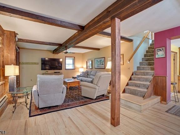 Unique offering in Rockaway Township, converted carriage house from built in 1915 on the Struble Family farm. Wonderful location just minutes to shopping, major commuting roads and several Downtowns. With many renovations over the years, the first floor offers an open floor plan, with a living room dining room combination. The kitchen, recently renovated, features granite countertops, natural cherry cabinetry, stainless steel appliances and recessed lights. Newly finished and conveniently located laundry room mud room off kitchen with extra storage. Three bedrooms on 2nd floor with den exercise room off master bedroom. Many charming features including natural wood beams and wainscoting. On a 1 3 acre lot with two storage sheds and quaint front porch with recessed lighting. Solar panels provide minimal electric bills!