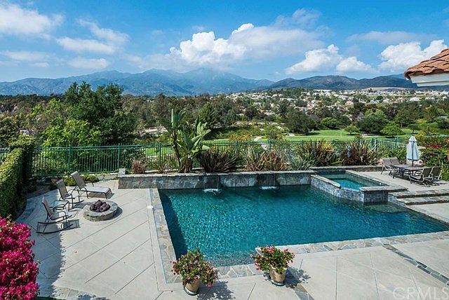 Elegant Serenity and Spectacular Views within the Gated Community of Dove Canyon. Tucked away on a Quiet Cul-de-Sac, this Tranquil Backyard Oasis has everything to offer with its Built-In Firepit, Barbecue area and Sparkling Pool with Waterfalls. Inside, the Open Layout is accented by Towering Ceilings and Oversized Windows with the Saddleback Mountains as a backdrop, visible from almost every room. The large Master Retreat provides a perfect Getaway with its own sweeping views and Fireplace to Cozy up to ~ Don't miss out ~ Your New Home Awaits ~