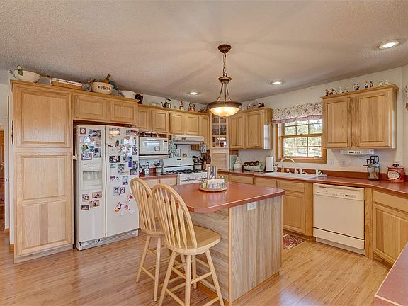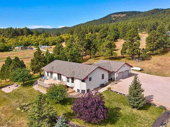 Well maintained 5 bedroom home on 12.93 acres, with killer views. oversized two car garage, on this ranch style home that you can see breath taking views of the Black Hills. Hickory cabinets large deck walk out from kitchen of living room, bay windows fireplace in living room, Master bedroom with lots of room master bath and a large walk in closet. go to the basement and a very large family room, game room three bedrooms , all of this and in floor hot water heat in basement and main floor. All of this just minutes from downtown Sundance. This is A must see home. Listed by Bud Hannah Re/Max In The Hills.