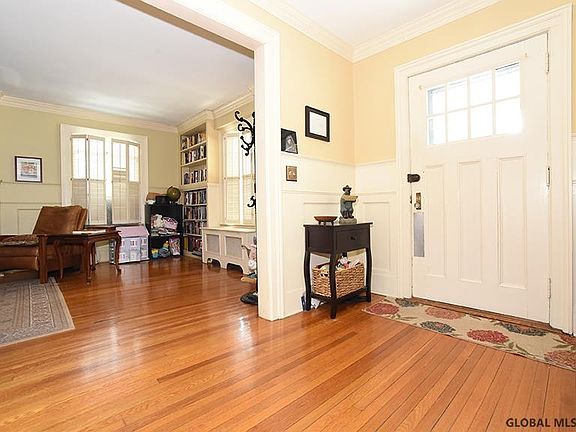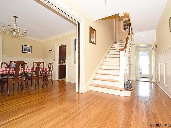 Charm and character throughout this 4 bed/3.1 bath colonial style home on one of the most desirable tree lined streets in the Capital Region! Expansive welcoming front porch greets you as you enter this home that features: updated kitchen with granite countertops, custom cabinetry and breakfast nook, hardwood floors, original trim & woodwork and built-ins throughout. Pocket doors close off the formal dining area which can easily create a home office space. Enjoy cozy nights by fireplace in the living room. Four season sunroom and half bath completes the first floor. The second floor is complete with 4 bedrooms, two with ensuites and an additional full bath. Additional storage in the walk up attic with cedar closet. Walking distance to all that Scotia has to offer!