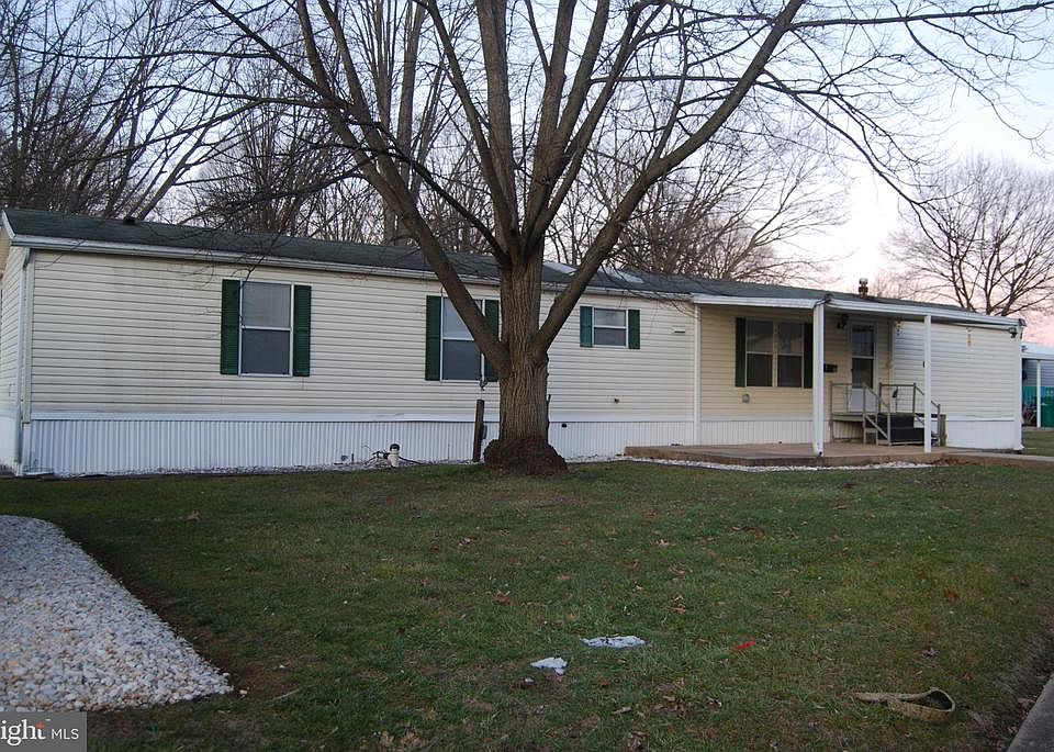 Very nice single wide mobile home in the 55 and over community of Palmdale Mobile Home Park conveniently located between Hershey and Palmyra. Very nice condition so just unpack your boxes and settle right in. Large windows allow an abundance of natural light to enter the home making it bright and cheerful. Ample living room with wood laminate floors and a built in curio cabinet. Eat in kitchen comes with a new refrigerator and new microwave plus a smooth cooktop stove and dishwasher. Floor is wood laminate and there is a pantry and a built in corner cabinet. The master bedroom is large and has a vaulted ceiling. Open the French doors from the master bedroom and enter the master bath. Here you'll find dual sinks, a soaking tub, separate shower and commode. At the opposite end of the home you'll find a second bedroom with carpet and a vaulted ceiling plus double closets. There is a laundry room off the kitchen with a door leading to a deck for your relaxation and also an 8x10 storage shed in the rear yard. Relax and/or entertain on the large patio in the front of the home. Home is located in a flood zone.
