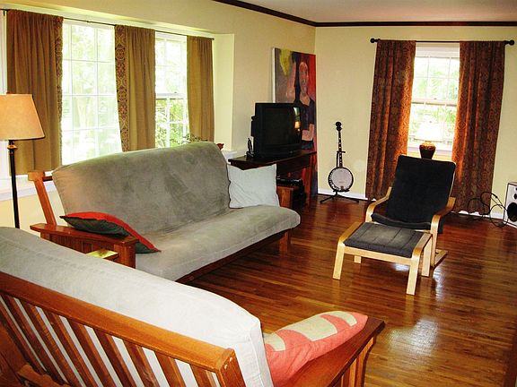 After a hard day at work enjoy your own oasis in the woods. This 3 bedroom, 2 bath, colonial-cape is surrounded by large trees and lush vegetation. The home is in excellent condition and features a fabulous eat-in-kitchen with authentic butcher-block counters fabulous ceramic tile flooring and direct access to an elevated 30x10 TREX-style deck. At 26x15, the family room is immense offering great spaces for entertaining and features hardwood flooring, lots of windows and a full brick-wall, wood-burning fireplace for those chilly winter nights. The living room/library also features hardwood flooring and two walls of floor-to-ceiling built-in book shelves. Both of the full baths have been graciously upgraded and with a full basement, 2-car garage, and an easily accessible attic, storage space in this home is not an issue.