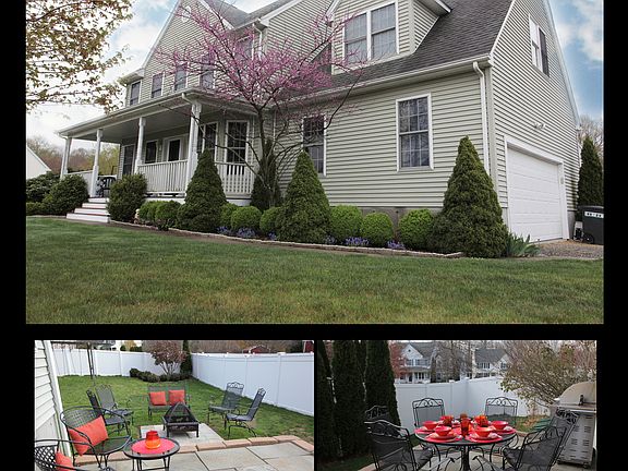Beautiful 5 bedroom Colonial, 2.5 bath, 2535 sqft including finished basement. .27 acres, corner lot on cul de sac, walking distance to Historic Downtown Mystic, Eat-In kitchen with center Island/bar area and oversized ceramic sink, SS appliances with convection oven microwave, Formal Dinning Room, Great Room with wood burning fireplace, 12x30 slate back patio w/pavers, fire-pit area, 6ft vinyl privacy fence, Master Suite with 6ft jacuzzi tub & walk-in closet, wainscoting & pedestal sink in 1/2 bath, wooden blinds & window treatments, storm doors, ceiling fans, 3-zone heating (oil/baseboard), public utilities, mature landscaping with perennials, public playground opposite property, near walking trails & horse stables, restaurants, train station, The Mystic Seaport, Library, and The Mystic Aquarium.1st month plus security, must maintain lawn, pets subject to approval, set up automatic oil delivery for the winter, sewer & garbage included in rent, other utilities separate