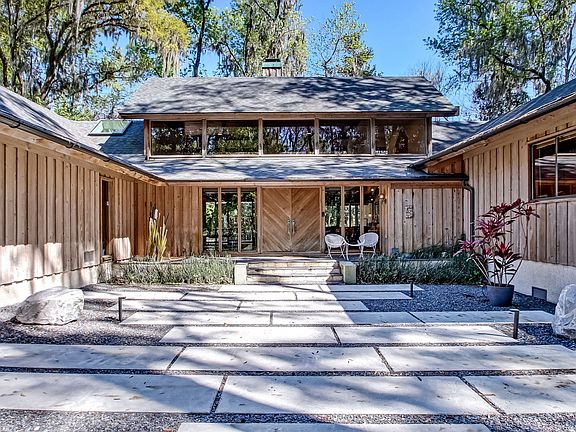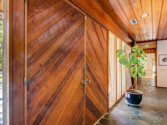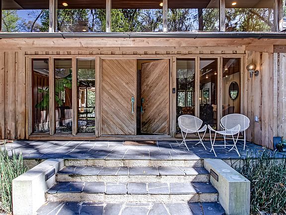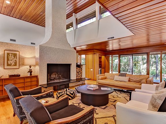 An ultra private, stunning oasis in the heart of the city! Situated on 1.4+ acres, this sophisticated, Cedar paneled, 4BD mid century home has been meticulously restored by a top local preservationist. Lofty windows & skylights bathe open living spaces in warm natural light; the living room & dining room feature clerestories. A grand tabby fireplace w/ granite bench serves as a centerpiece. Bright & fresh kitchen w/ original cabinets has mid century vibe, updated w/ new appliances, fixtures & countertops. Eat in alcove. Master suite w/ warm Cypress wood paneling, huge windows & sitting room. New oak flooring. Original custom built-ins abound w/ cabinets for everything allowing incredible functionality w/out clutter. Large family room w/ art studio. Built-in wet bar. Hidden playroom/observatory. Wooded exterior views & outside space w/ private decks off each bedroom. New hardscape, outdoor entertaining area w/ custom fire pit. 2 car garage. Property borders Bacon Park Golf Course. 2023-05-01