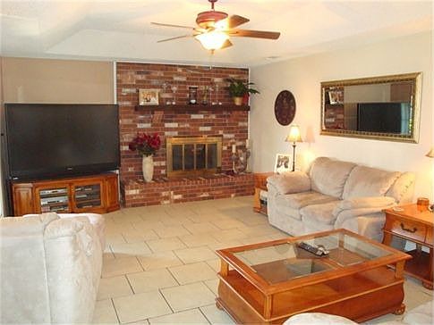 Listing agent: Ann Bishop, Call 940-691-7355 for information. Lovely 3/2/2 home in Midwestern Farms on quiet cul-de-sac with 1454 SF. New energy efficient windows throughout, and all new kitchen appliances. Nice built-in hutch ideal for storage. Great open living area with fireplace. Newly installed front porch/sitting area – great shade from tree. Huge back yard with access to walking trail.