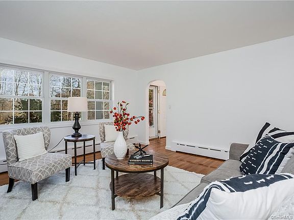 Charming farm house colonial tucked in the Unionville section of Farmington on a beautiful 1 acre lot with an enormous shed! This home is updated and is move-in ready. On the main floor you will find a cozy eat-in kitchen with two huge closets, dining room, living room with wood burning fireplace and a den which can be used as an office or 5th bedroom, plus a half bathroom. The second level has 4 large bedrooms and a newly remodeled full bathroom. Refinished hardwood floors throughout. In 2007/2008 the following improvements were made: new roof, new Pella windows, new front and back doors, and new kitchen including cabinets and granite counters. The boiler was replaced in 2010 and a new well pump was installed in 2017. In 2019 the interior was painted and the full bathroom remodeled. The basement is very clean and dry and has an epoxy finish floor. This home is located on a pretty country road within walking distance to the extensive rails-to-trails system for walking, running and biking trails. The Farmington River is close by too for kayaking and fishing!