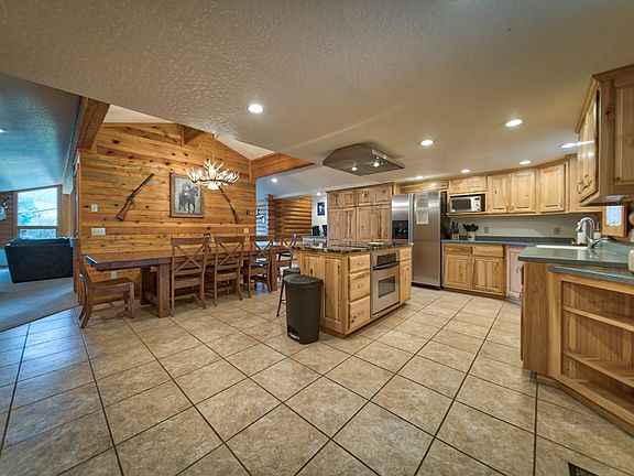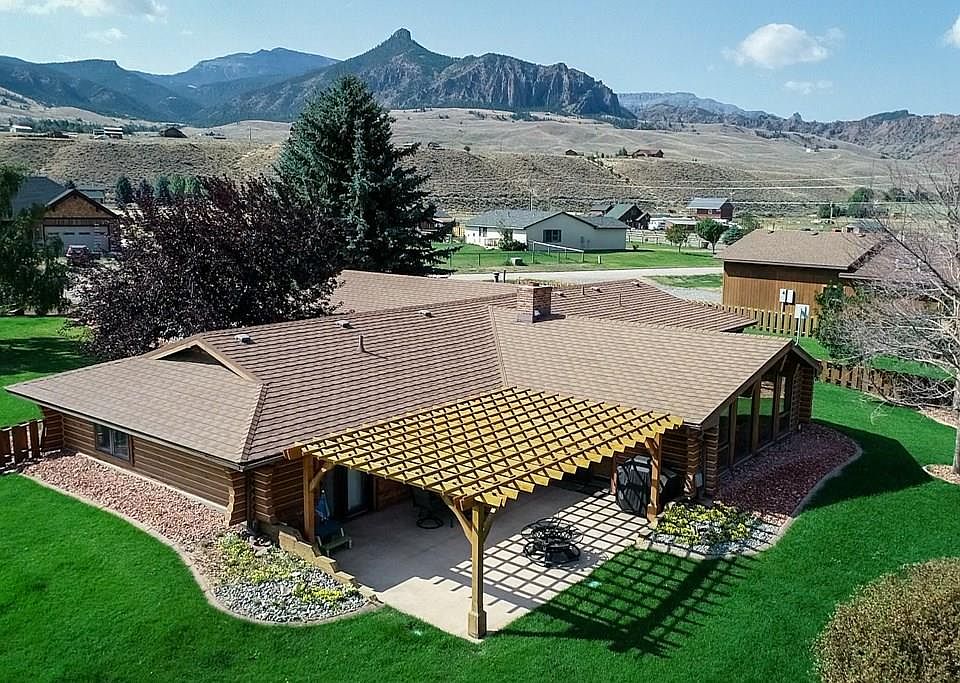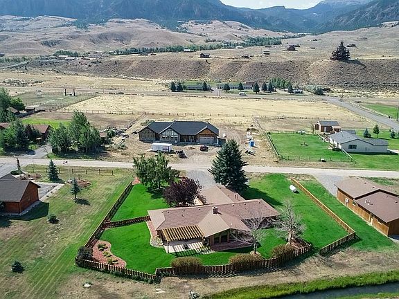 Dream log home in the highly sought-after Peregrine Ranch subdivision in the breathtaking Wapiti Valley. This remarkable property combines rustic charm with modern comforts for an extraordinary living experience. The recent log restoration and chinking showcase its timeless beauty, and the architectural shingles ensure long-lasting durability. Built-in 1994, this spacious 3-bed, 2-bath home spans 2,200 square feet and sits on a generous 1-acre lot. The 2-car garage provides ample space for your vehicles, while the separate 1,800-square-foot heated RV garage, complete with a pro/electrical shop, offers endless possibilities for hobbies/storage. The versatility continues with a small tack barn and a mini corral, perfect for animal enthusiasts, and a Generac backup generator for peace of mind. Step inside and be embraced by the warmth of the gas fireplace, creating a cozy atmosphere for relaxation and gatherings. Enjoy the awe-inspiring mountain views from the outdoor patio adorned with a treated pergola, and unwind in mother nature's beauty. The well-water supply and irrigation ditch guarantee an abundance of water for both the house and the beautifully landscaped yard. This property also has an exceptional and lucrative rental history and comes fully furnished. This turn-key gem is ready for you to move in or seamlessly continue its profitable rental operation. Limited viewing opportunities are available. Call Today!