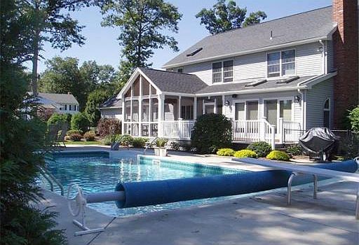 It's got all the bells & whistles! Beautiful sought after neighborhood, eye-catching exterior & gorgeous landscaped grounds this 9 Rm, 4 Bedroom, 2.5 Bath Colonial home is second to none! Boasting over 2,840 square feet of living this home offers a great flowing floor plan with an open living design. Palladium two story foyer w/2nd floor balcony, double entry formal Dining, beautiful custom Kitchen w/Vartanian cabinets, new granite countertops, center island breakfast bar & informal dining w/views of open staircase foyer & living areas. Wonderful Family Rm. w/gas fireplace, side arched windows, two skylights, french doors to Living Rm & sliders leading to Trex deck overlooking inground pool & private yard. Spacious Master Bedroom w/cathedral ceiling, walk-in closet & private Jacuzzi bath. First flr laundry, lower level game room & workshop area. Central air, central vac, security system & 2 zone gas heat. Vinyl exterior, sprinklers & beautiful screened porch overlooking patio & pool.