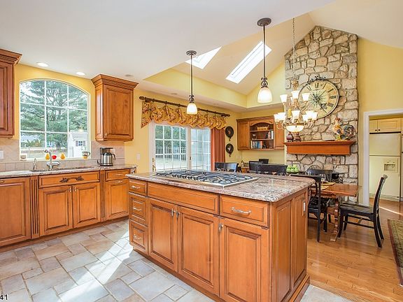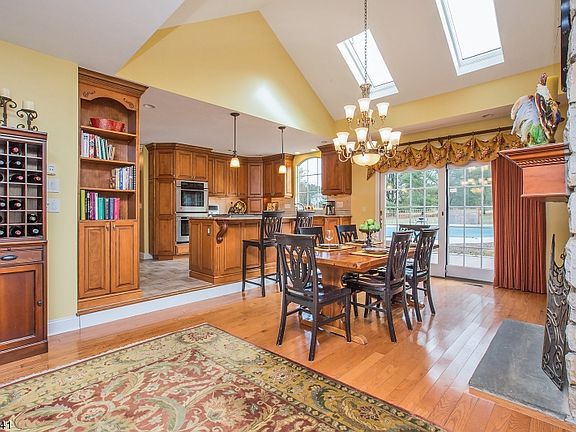 This 3500 square foot colonial located in Toll Brother's Glen Eagles development in Neshanic Station has been expanded and modernized. The centerpiece is a remodeled gourmet kitchen and family room. The kitchen features custom 42" Maple cabinetry, granite counter tops, stainless steel appliances, and a large walk-in pantry. The breakfast room features a gas fired stone fireplace. The hardwood floors in the breakfast room and family room are enhanced with radiant heat. The den/study includes a custom wet bar with wine chiller and a brick fireplace.The expanded master bedroom suite includes a sitting room, remodeled bathroom, jacuzzi tub and a separate stall shower and a room sized walk-in closet. Professionally finished basement, recently updated in-ground pool, hot tub, deck, patio and a retractable awning.