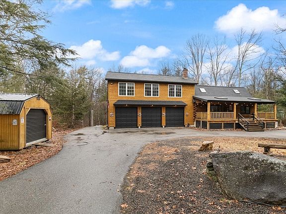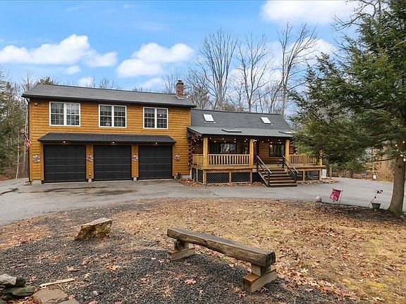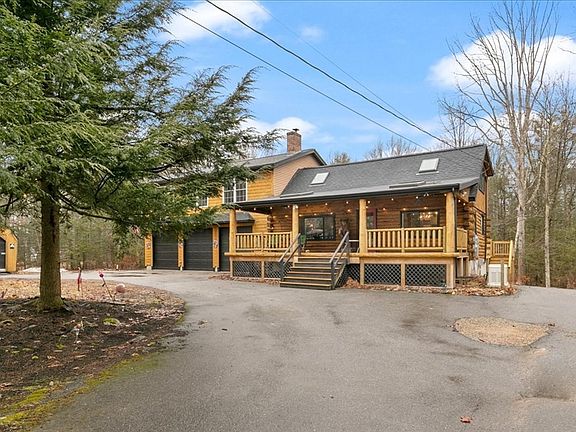 This unique and secluded,recently updated 3-4 BR 2.5 bath Full Scribe Log Cabin home is situated of 1.46 acres and abuts conservation land.The Primary Bedroom Suite has cathedral ceilings,walk in closet &and spacious Full bath w/laundry.The home has so many new features including,a new FHW heating system w/a HW storage tank.New Combo Mini splits,New appliances,a new whole house generator and new pellet stove in the living room.There are new gutters & a new roof,windows & doors.Many new light fixtures ,ceiling fans,granite counters & appliances,just to name a few. There's a 3 car heated garage w/auto door openers & 4th door in the rear to access the backyard easily.Enjoy your firepit or relax on your newly renovated farmers porch with ceiling fans & skylights.Lets not forget the New 28x12 shed w/a workshop.The backyard has a raised bed garden w/drip hose irrigation a timer.Don't miss out on your chance to this home!!!