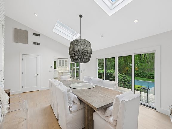 sq. ft. lower level has a large, open recreational room, living/media area, laundry room, full bath with frame-less glass shower and a fifth bedroom. The home has a new generator, windows and roof. Outdoors relax or dine on the new custom deck or in the heated gunite pool. A newly constructed pool house with custom mirrored gym, designer kitchen with black cerused wood, laundry, full bath gym and a covered space overlooking the heated gunite pool is a wonderful addition. The driveway and gardens have all been magnificently redesigned creating a beautiful oasis on a shy acre of property. The home is perfectly positioned just minutes to Bridgehampton, Southampton, Sag Harbor and picturesque horse country as well as both ocean and bay beaches. RP241715