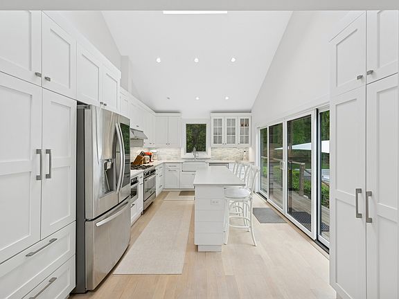 Rental Registration #: RA241715 A chic modern exterior will greet you at the front door. Inside you will find a crisp, sunny Hamptons beach vibe as you enter the spacious living room with vaulted ceilings and a fireplace. The five bedrooms all have an individual quiet and calming space. The master suite has a beamed cathedral ceiling, custom finished walk-in closet and a beautiful bath with marble countertop. The guest suite also has a custom walk in closet and ample natural light. The other two guest bedrooms share a spacious bath and enjoy vaulted ceilings as well. There is a dining area that flows into the eat-in kitchen with cathedral ceiling, stainless steel appliances, stone counter tops and island with seating. The finished 1,500