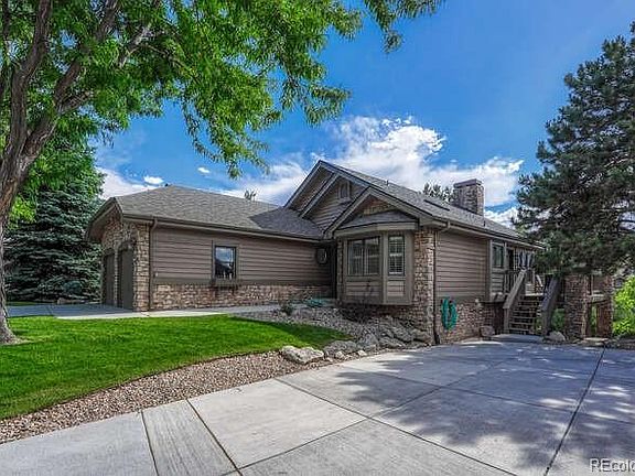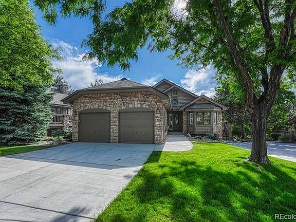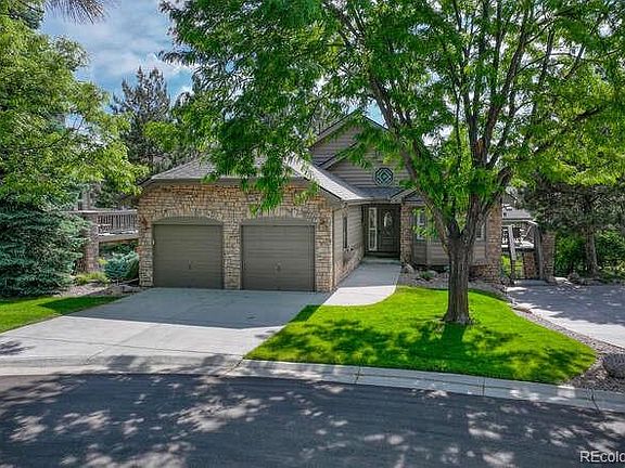Welcome to 5 Tauber Ct, located in the highly sought after The Hamlet gated community. This is a rare opportunity to live in this beautiful exclusive community. Perfectly located on a cul-de-sac and backing to The Ridge golf course and open space, this lovely ranch style home welcomes you with a gorgeous new front door. As you enter you are greeted with 13-foot vaulted ceilings, beautiful hardwood floors and open floorplan. The main floor features the heart of the home, a large but cozy family room featuring a floor to ceiling stone fireplace, stylish plantation shutters and opens to the dining room surrounded by windows with views of the wrap-around deck and gorgeous lush landscaping surrounding the home. The bright and sunny gourmet kitchen features a large island, quartz countertops. stainless steel appliances, two sinks, 14 foot vaulted ceiling, skylight and eat-in kitchen area with bay windows. The large main floor primary bedroom continues with high ceilings and plantation shutters and features a spacious spa-like bathroom with an oversized air jet tub, six head shower, granite countertops and plenty of storage. The newly re-finished walk-out basement features a recreation room, a new custom fireplace, new carpet and flooring and remodeled bathroom with access to the second bedroom. The large unfinished portion of the basement has ample space to finish to allow for a 3rd bedroom and/or home office. Enjoy the peaceful outdoors and new landscaping on the lovely 20 x 8 wrap around deck with available gas line, or take in the views from the back patio off of the basement. This home is immaculate and has been meticulously cared for. The HOA includes all lawn maintenance and snow removal. NEW ROOF FALL OF 2023, BRAND NEW EXTERIOR DECK FLOORING JULY 2024, NEW SPRINKLER SYSTEM JULY 2024