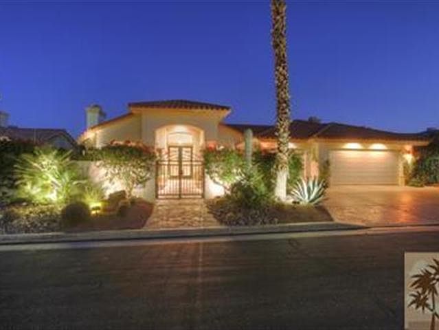 Custom home with southern views overlooking 2nd fairway of Desert Willow Mountain View Golf Course from this architecturally designed landscaped yard, huge pebble-tec pool/spa, retractable awnings, covered pagoda w/firepit, bbq cooking station and outdoor dining. A gated front courtyard entry through double front glass doors into a large foyer, formal living room w/fireplace on one side and formal dining room w/custom dry bar on opposite side, great room includes kitchen w/raised panel cabine...