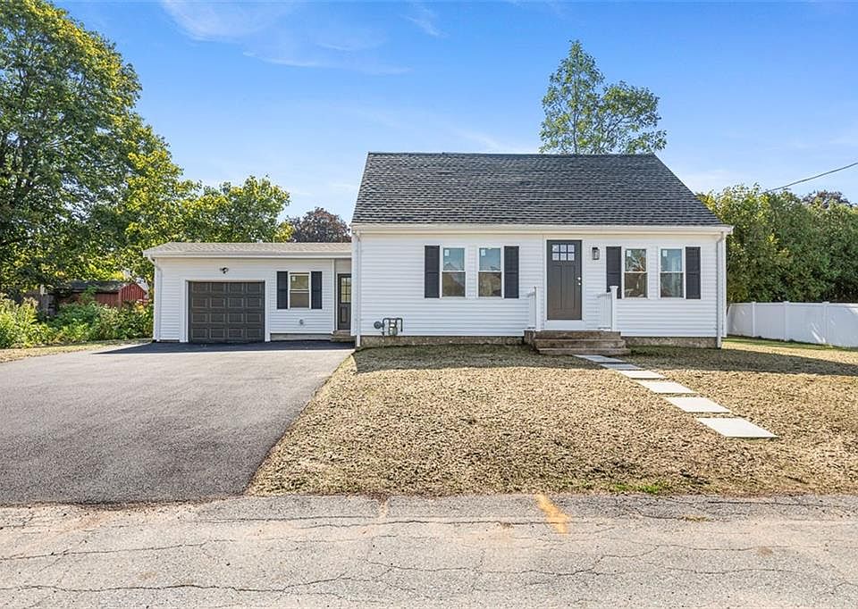 Stunning Fully Renovated Cape Cod style home in Cumberland. New kitchen equipped with stainless steel appliances and quartz countertops and soft close drawers. Freshly renovated hardwood floors throughout. A generously sized living Room and dining area with a first floor bedroom. New First floor full bathroom with quartz vanity and tiled tub and shower surround. Upstairs has a perfect spot for a home offices/sitting room, bedroom with deep closet. A large full bathroom with mosaic tile floors and tiled shower complete the upstairs. New Forced Air Heating System, New Insulated Windows, New Air-conditioning, New architectural style roof, New two-lane Driveway. New Garage door with insulated walls. New Septic System. Convenient location and minutes to highway, shopping, restaurants. This is a must see!