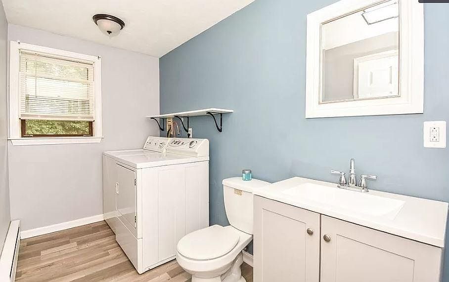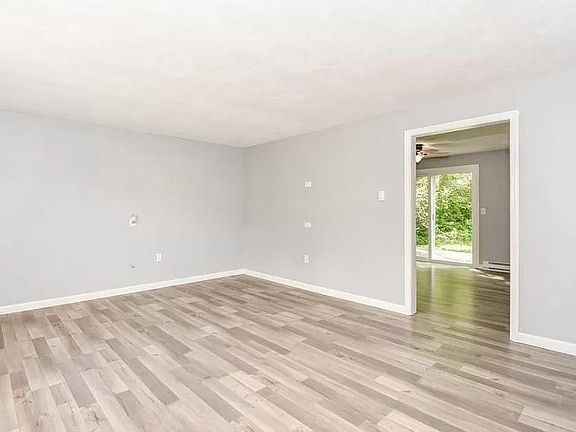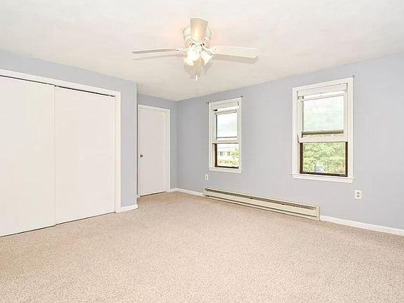 Beautiful 3 level END UNIT townhouse with superior setting at the edge of a cu de sac with two bedrooms and a bonus room that could easily converted for a third bedroom or office! Shared 1.38 acre lot with beautiful lawn and abutting woodlands. You have your own shed and a charming private rear deck! Inside, you will see freshly painted gray walls with white woodwork in the oversized living room, a white cabinet kitchen with stainless steel appliances, gray driftwood style laminate flooring, and a 1st floor half bath with washer/dryer set-up and a brand new gray vanity. Upstairs there's a king-sized Master bedroom with double closet, and additional bedroom, a full bath and a 3rd floor BONUS room for office, studio, play room or additional sleeping space!! Owner pays gas and electric. Move in ready by second week of July.