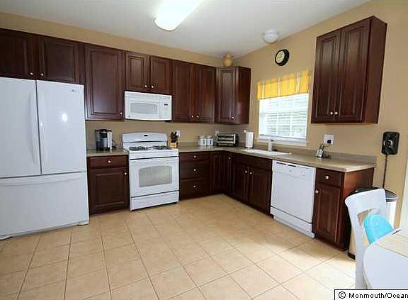 Newer neighborhood home w/3 bedr, 2.5 baths & FULL FINISHED BASEMENT! Wood flrs in foyer, hall & dining rm, tile flr in lg EIK w/Cherry cabinets. Cul-de-sac, wooded backyd/ privacy, sprinklers, fully fenced-in! This home is immaculate & is in move-in condition! Direct entry 2-car garage, din rm, living rm open to kitchen, sliders to lg deck. 3 bedrooms & full bath w/tiled tub/shower, dual vanity in large master bathroom, and walk-in closet. Full finished basement + storage. NOT a Short Sale!