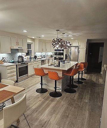 • Kit Dscrp: Flooring - Vinyl, Kitchen Island, Stainless Steel Appliances, Open Floor Plan, Recessed Lighting, Country Kitchen