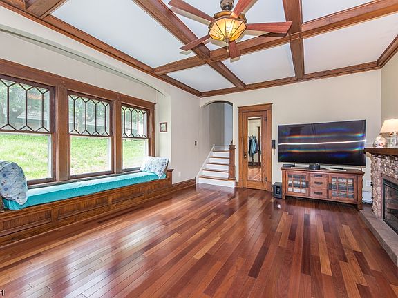 Charming Craftsman style colonial home. Kitchen, living room, dining room and mudroom on first level and three bedrooms and full bath on second. Unfinished basement offers storage and laundry. The inviting rocking chair front porch welcomes you into this charming, Craftsman style colonial home. Enter into a beautiful living room with coffered ceilings, gorgeous wood moldings, hardwood floors and leaded glass windows. The coffered ceiling continues into the nicely sized dining room, with 2 walls of windows. This leads to a kitchen with charming built-ins and access to the back porch/mudroom and basement. The second floor offers three roomy bedrooms with original hardwood floors, 5 panel doors and hardware and nice light in each room; and a full bath. The yard is beautifully landscaped and welcoming.