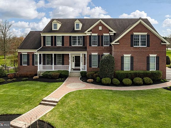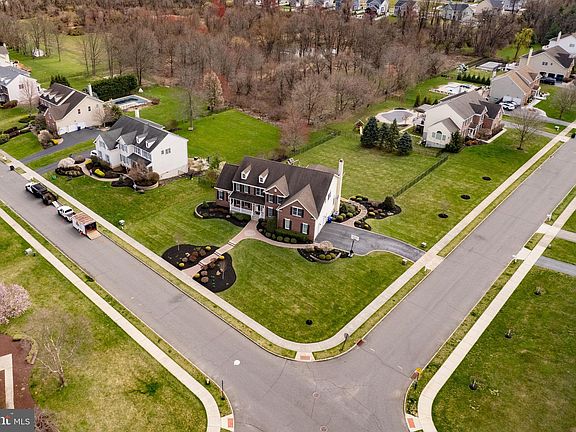 Welcome to this custom Toll Brothers-built North Facing residence, boasting 4,187 square feet, 4 bedrooms, 3.5 baths, situated on a .83-acre premium corner lot in desirable Chesterfield Township. A meticulously landscaped yard and inviting paver front walkway beckon you into this exceptional home. Upon entry, hardwood floors grace much of the first floor, the living and dining room combination enhanced with double crown molding, chair rail, and picture frame molding. The heart of the home lies in the beautiful gourmet kitchen, boasting 42" custom cabinets, a food pantry, large center island, and a bumped-out breakfast area that opens out onto a Trex composite deck on the main level. Upgraded stainless steel appliances gleam alongside Quartz countertops and recessed lighting. Adjacent to the kitchen, a soaring two-story family room awaits, featuring a striking floor-to-ceiling stone gas fireplace, built-in speakers, and expansive windows framing picturesque views of the yard. Additionally, the first floor features a powder room with hardwood flooring, a laundry room, an office with built-in bookshelves, and an impressive conservatory room with vaulted ceilings, enhancing the allure of this spacious area. Dual staircases lead you to the second level landing with hardwood flooring, where you will find a Jack and Jill bedroom along with a princess suite. The master bedroom suite features a walk-in closet with a California closet system, tray ceilings, a full bath with a jetted Jacuzzi tub, skylight, large vanity, and a stand-up shower stall. The expansive walkout basement offers a finished area for versatile use, while the remaining space presents high ceilings and can easily be converted into additional living space. Ensure peace of mind with the added convenience of a backup Generac generator. The home also boasts a 3-zoned HVAC system and a 2-car garage with additional storage. Outside, the professionally landscaped yard includes an underground sprinkler system. The fenced backyard offers privacy, backing onto a natural wooded area and featuring a charming paver patio, perfect for outdoor gatherings. Situated in a sought-after Chesterfield community, this must-see home epitomizes superb craftsmanship and top-of-the-line materials. Its prime location is just a short stroll from Chesterfield Elementary School and offers easy access to Routes 206, 130, 295, and the New Jersey Turnpike. Conveniently positioned, this residence is a mere 15-minute drive from the Hamilton train station, providing direct access to cities such as Princeton, Philadelphia, and 1 hour to New York City, making it an ideal choice for discerning buyers seeking luxury living with effortless connectivity.