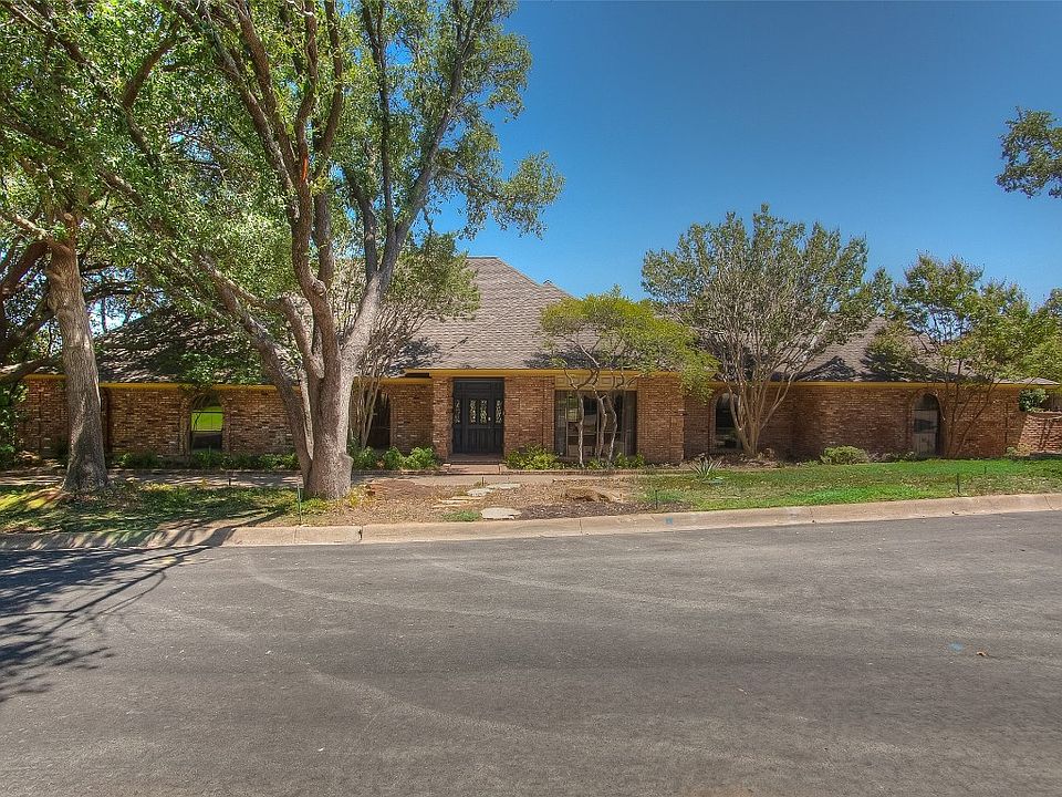 This home is great for entertaining and features a spacious family room with pool table space, fireplace, and 14-foot ceilings. The room has full-view windows offering a stunning view of the pool, cabana, and downtown Fort Worth. Built-ins and triple crown molding runs throughout the house with Mexican tile in the family room and breakfast area. The cabana includes a storage closet, full bath, and wet bar. The sunroom has full-view windows and a wet bar. One of the bedrooms connects to a large sitting room with its own patio access. The dining room boasts a beautiful chandelier and built-in cabinets connecting with the living room and kitchen. The primary bedroom adorns a cozy sitting area with a fireplace. Upstairs, a spacious game room with two areas of attic storage. This home has lots of storage space. Additional parking in the back is ideal for a boat or RV.