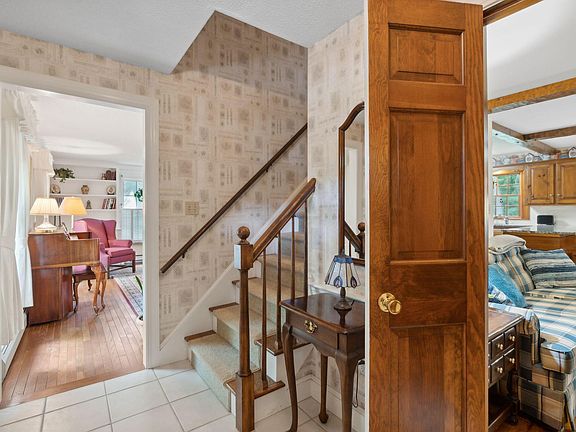 The exterior shows a classic Garrison style architecture, featuring a welcoming facade with a blend of brick, clapboard siding. Inside, the home greets you with a mix of hardwood, tile, and pine flooring that enhances its rustic appeal. Sun-drenched rooms throughout the house are bathed in natural light, creating a bright and airy atmosphere that uplifts the spirits year-round.