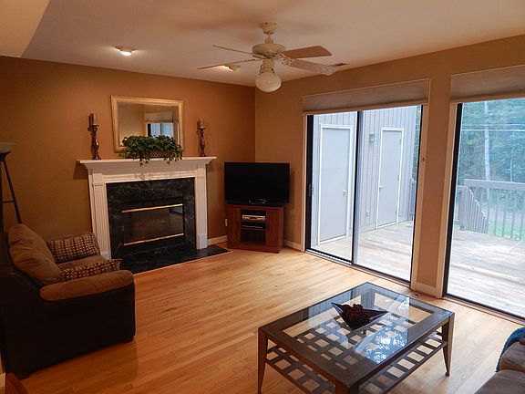 Delightful End Unit Townhome features a first floor Bedroom & Full Bath.Shiny hardwoods throughout.Sunny Living Room w/gas logs opens to the spacious deck with gorgeous wooded views of Army Corp of Engineer Land. Cheerful white kit with great counter space has a sep nook.Enjoy grilling out in the private courtyard. HOA dues include pool, tennis, pond & Clubhouse. Large 2nd floor bedrooms with with double closets each have a private bath. Tons of storage throughout. Convenient location to I-40, Chapel Hill