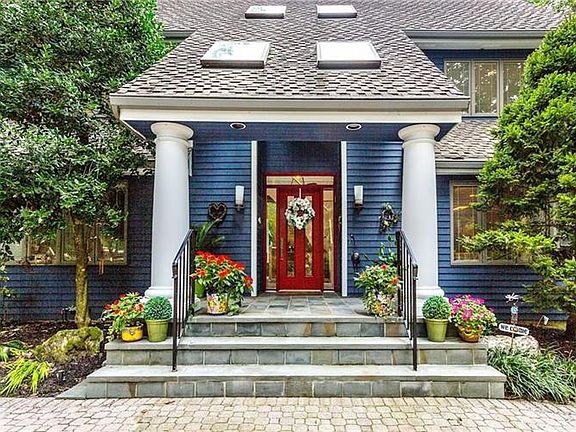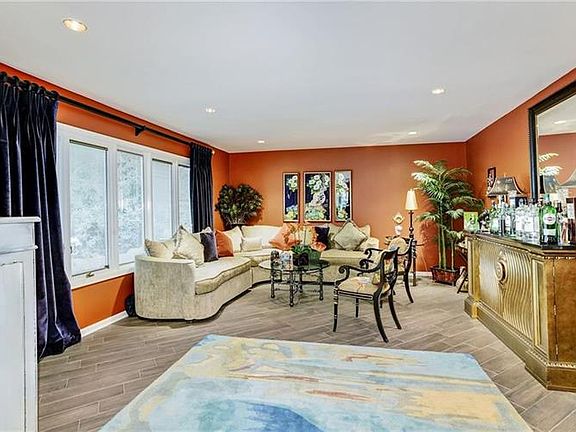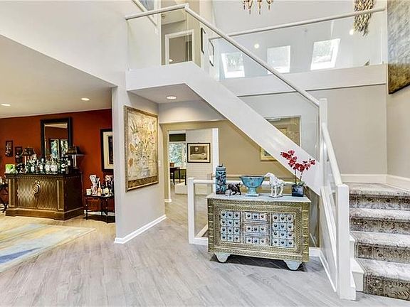 FABULOUS REDUCTION!!A much desired Cul de Sac, amazing home nestled in a peaceful paradise w Architecture like non other. Dream house boasts 2 stry vault ceil w skylights, design light, Multiple Pella case windows, . Gour EI kitch, new flrs, quartz cotops , bsplash , New SS appl, Therm Sub Zero Refrig, porc cer tile flrs Wine Refrig Dbl Oven, Induction, Bosch Dishwash. and 2 side WB FP , Dumbwaiter, HH, New HW flrs, down, Master W His and her WI closets and updates in master w quartz counters and faucets sink., shower stall vaulted skylight ceilings, , Master suite has deck, Fridge, 3 Large BR upstairs w guest bath Backyard Haven w IG Gunite pool, Generator Path Koi Pond. Paradise awaits, all rooms sizes and Sq St approx. upstairs chandelier not included