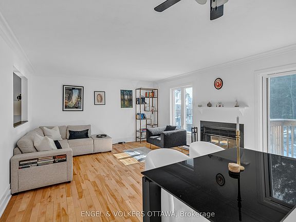Welcome to 5 Timberview Way #7, a well-maintained upper-unit condo townhouse. This 2-bedroom, 3-bath unit offers over 1,100 sq. ft, modern updates, and open-concept living, making it perfect for first-time buyers. The main floor features hardwood flooring throughout, a spacious eat-in kitchen, and an expansive living and dining area with a cozy wood fireplace. Off the living room, step onto your private balcony overlooking the tranquil NCC greenspace, a perfect spot to relax in peace and privacy. Upstairs, the bright and airy primary bedroom features its own private balcony, a 3-piece ensuite, and a walk-in-closet. A large family bathroom and a second bedroom, ideal for children or a home office, complete the upper level. This property also includes a fenced-in yard on the lower level, providing a great space for entertaining guests or hosting family barbecues. Conveniently located near all that Bells Corners has to offer, you'll enjoy easy access to shopping, dining, parks, transit, and highways.