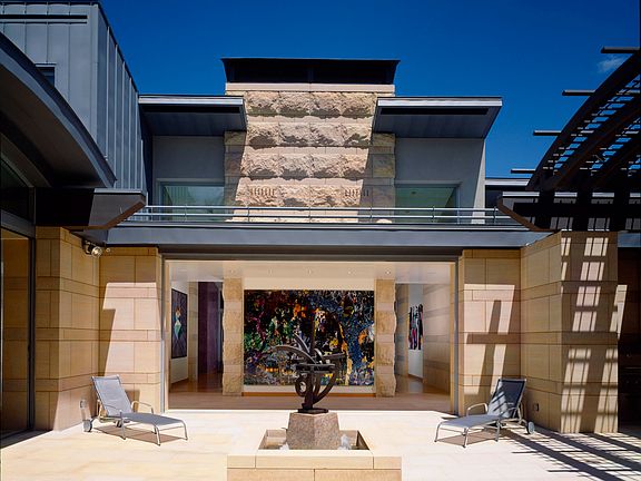 Hillside beauty and tranquility envelope this remarkable residence, one of only two homes on gated Toby Ln, positioned at the edge of Aspen's West End. Designed by Bill Poss Architects, the thoughtful floor plan allows for single level living, with the master suite, kitchen, dining and family room all accessible from the entry floor. The composition of Minnesota limestone conveys an ethereal luxury throughout, while light fills the home through floor to ceiling glass. Be welcomed by an open air courtyard connecting three sides of the house, creating a wonderful indoor/outdoor lifestyle and an exquisite space for entertaining.